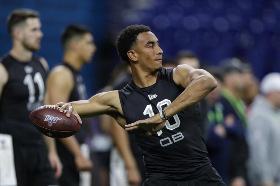 - Oklahoma Jalen Hurts- Jalen proved why he should be a QB at the next level with his 4.59 40 time, with great footwork and polished delivery during his workout proved he is similar to Justin Herbert and Jake Fromm.